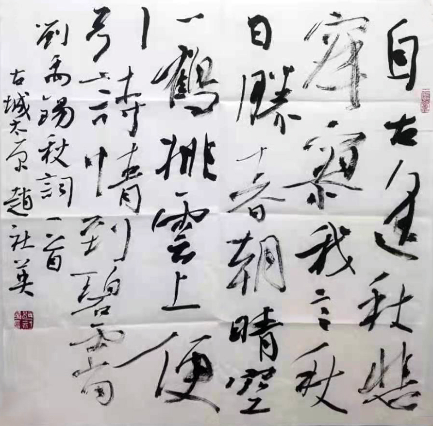 赵社英 书法《刘禹锡自古逢秋悲寂寥》 69X69cm