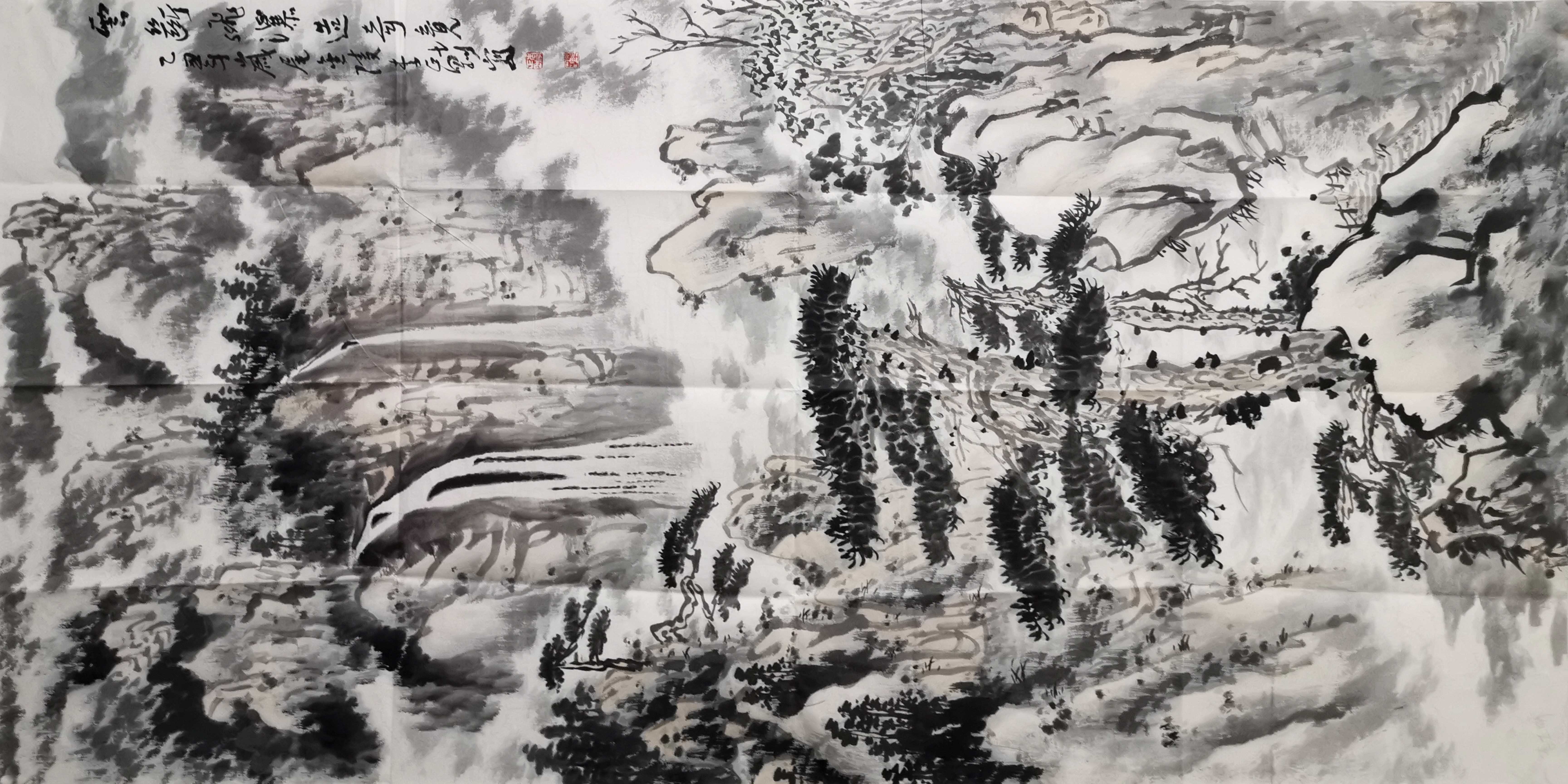李正刚 《云断飞瀑选奇竟》 70X137cm