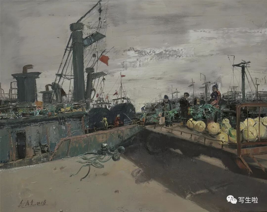 名家书画:郭永文 景物画《成山码头》100x80cm