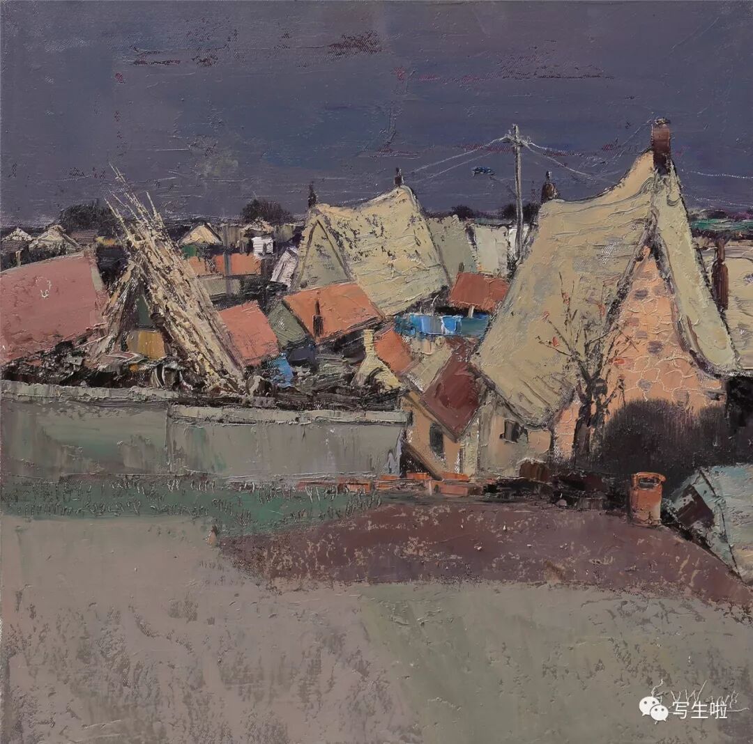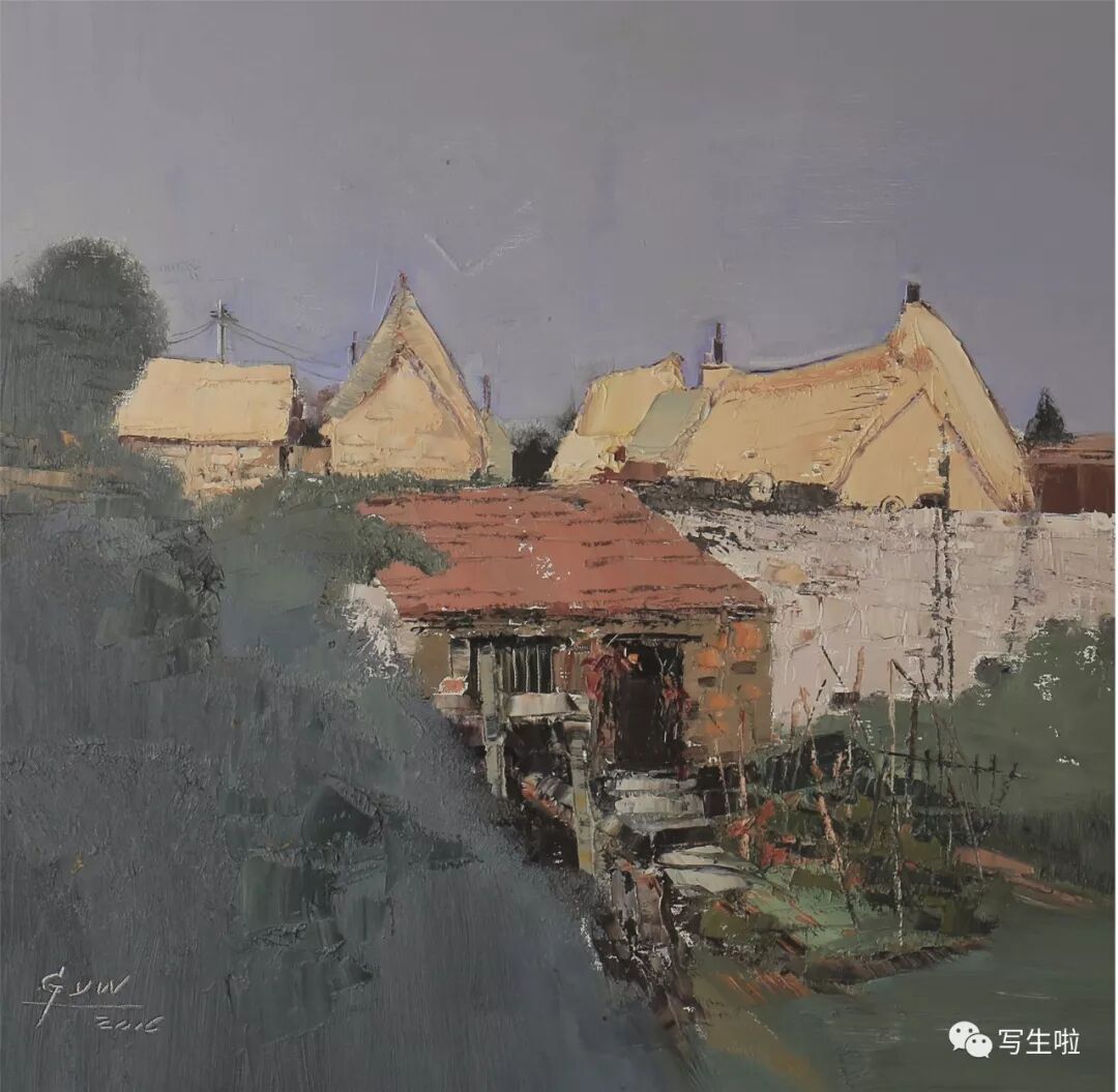 名家书画:郭永文 景物画《小庄村》60x60cm
