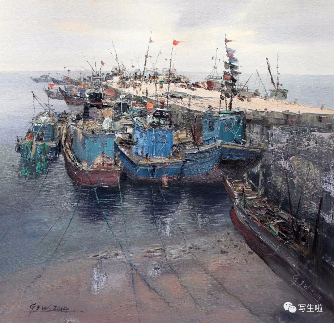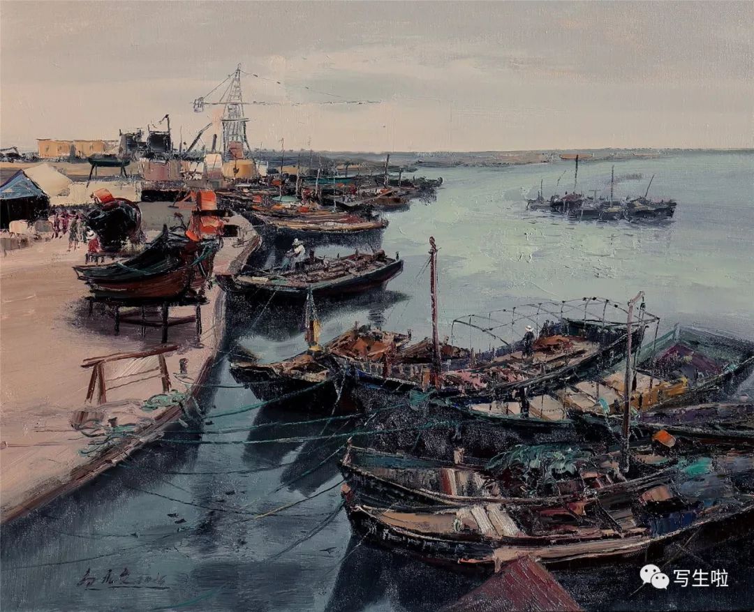 名家书画:郭永文 景物画《乳山码头》80x80cm