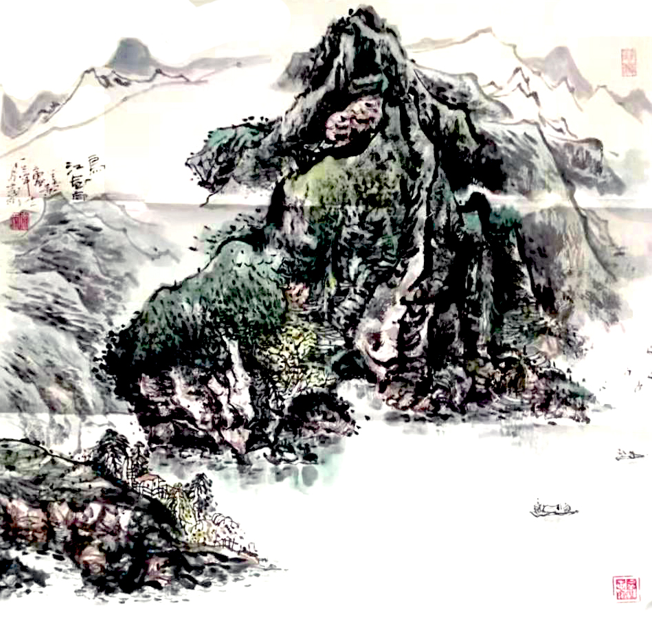2008年,“5.12”汶川地震后,李刚创作了一幅名叫《峻岭烟波》的国画作品,在这幅作品中,画家画笔下的山不仅让我们读到了一种流畅的气势,更让我们读到了一份坚实与沉稳的力量,这就是画家在地震后对人类安危和幸福的思考。