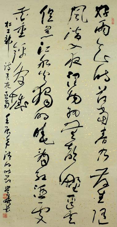 刘兴华 草书 杜工部诗《春夜喜雨》134x68cm 润格:协商