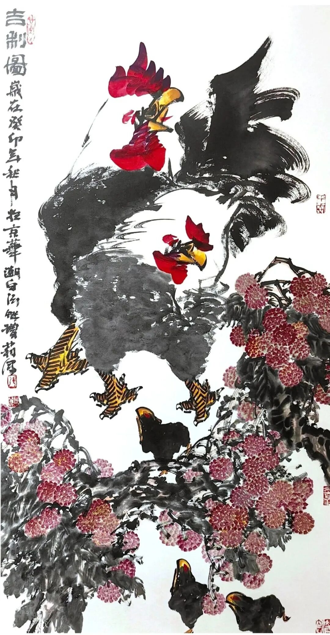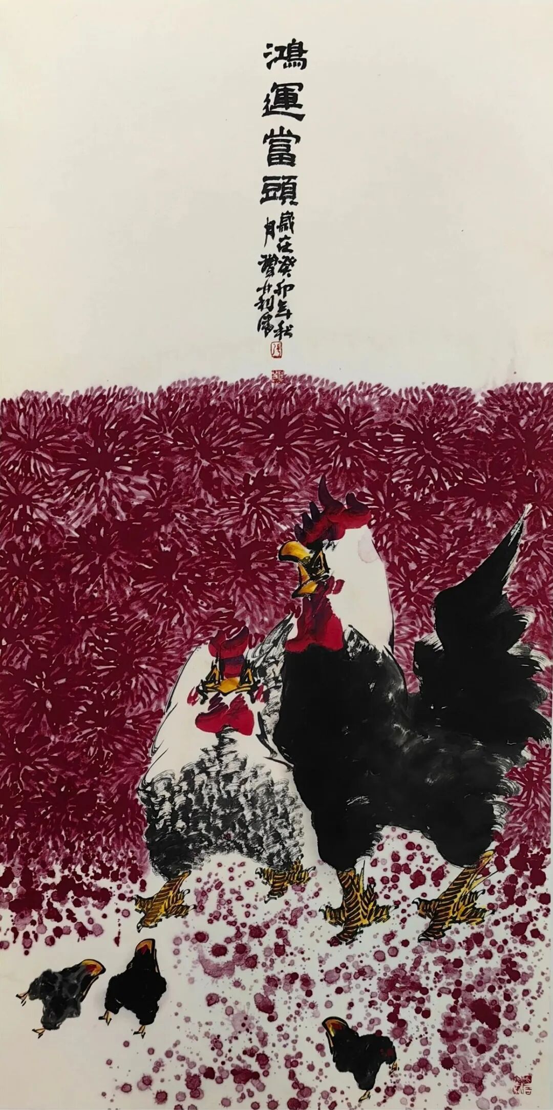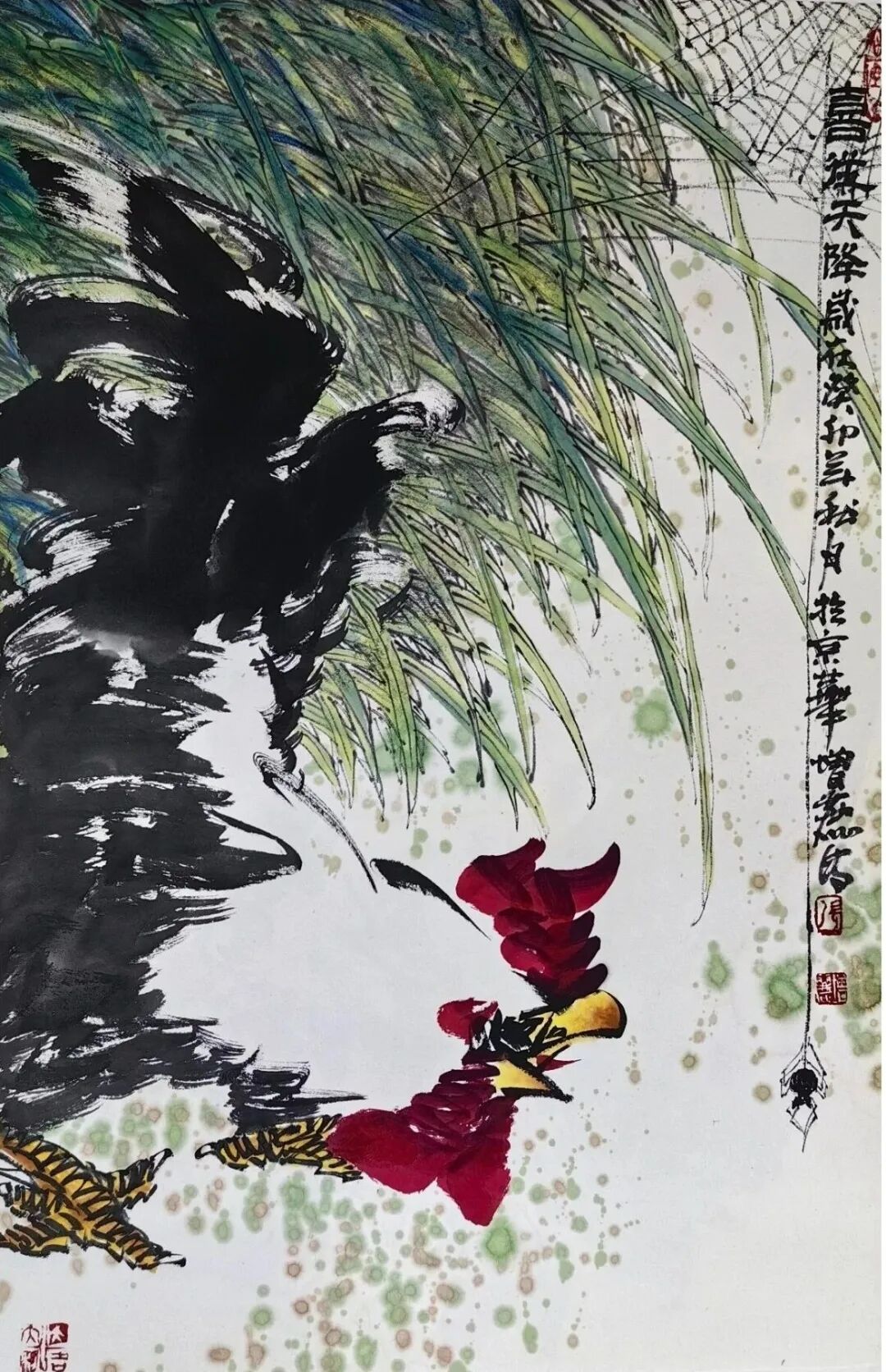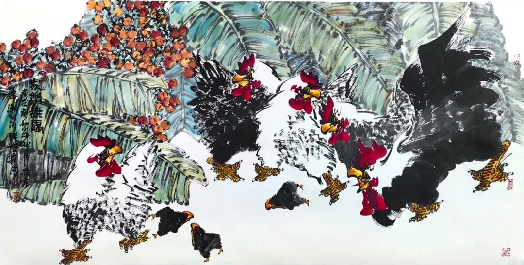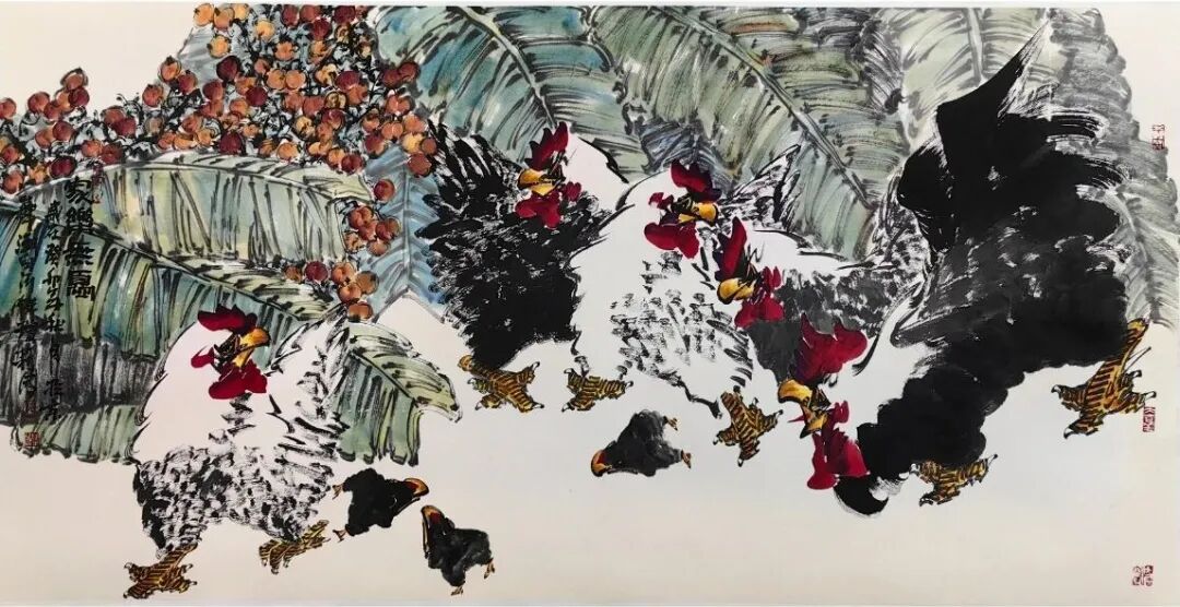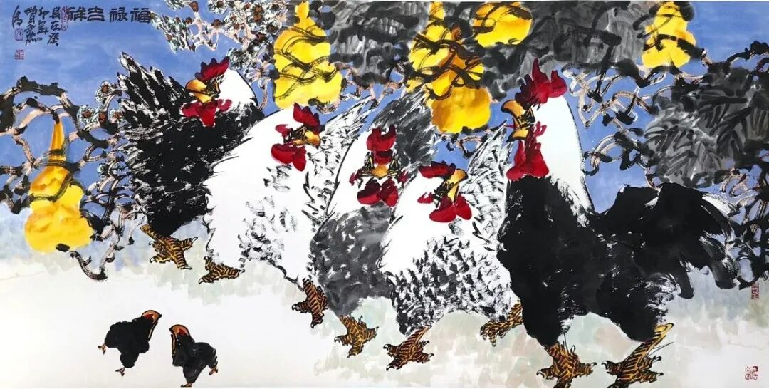名家书画:张增丽 花鸟画《同乐图》70x139cm 润格:协商