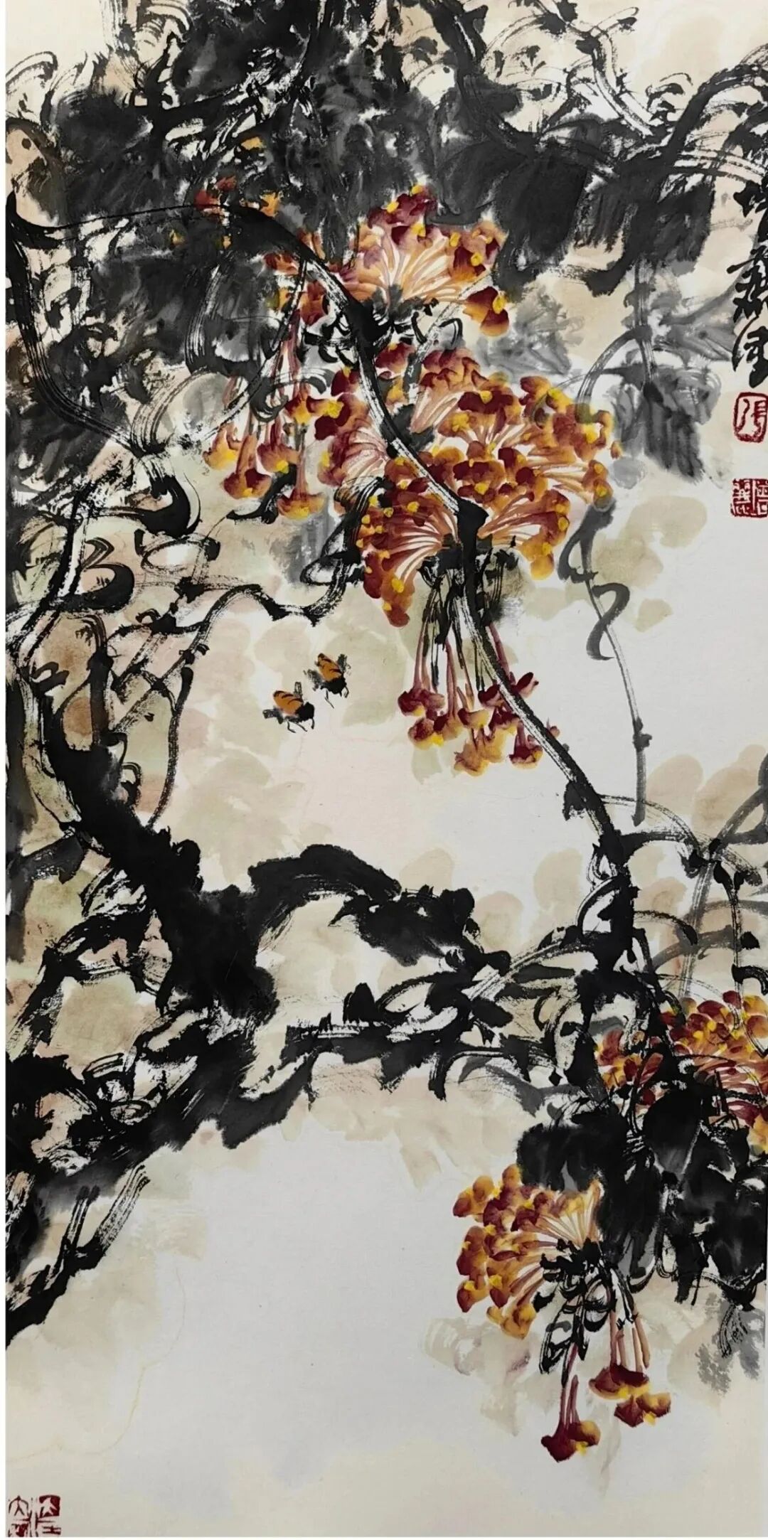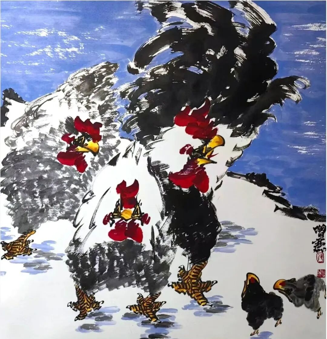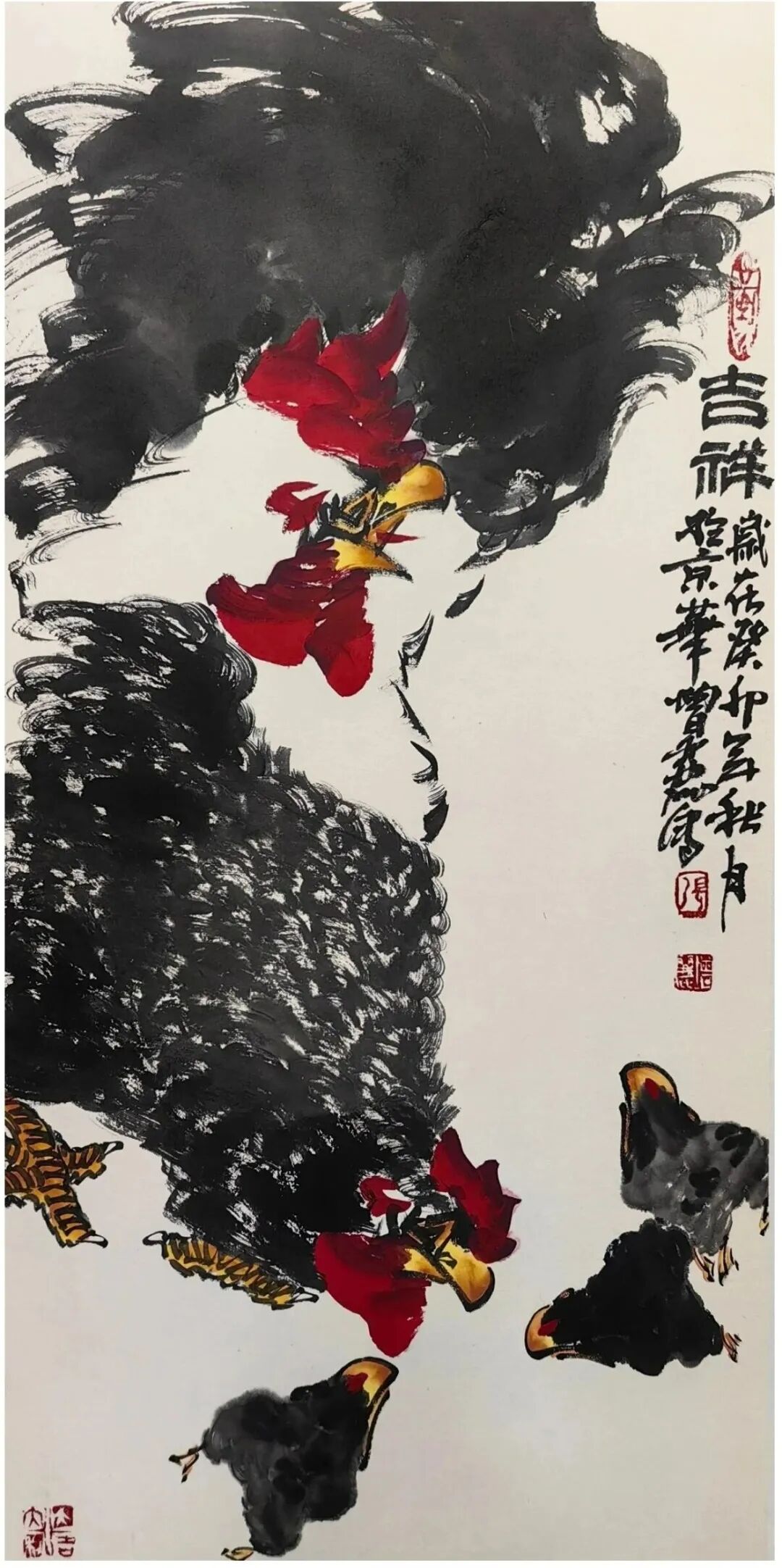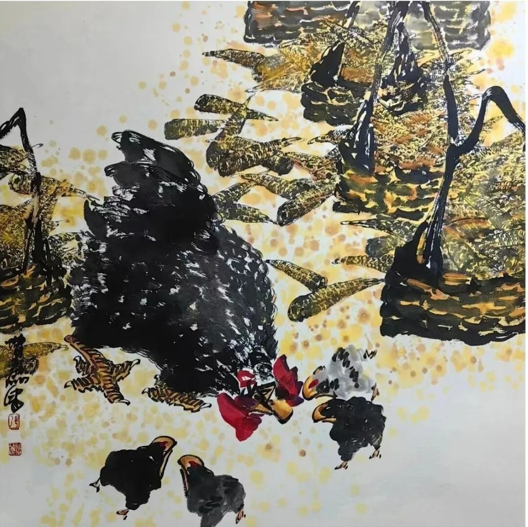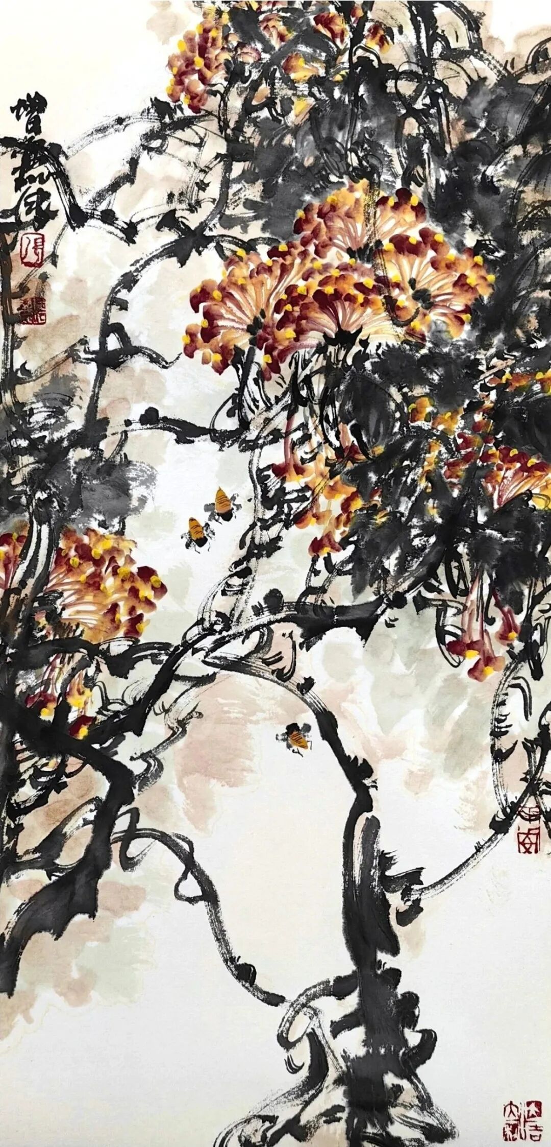 名家书画:张增丽 花鸟画《同乐图》70x139cm 润格:协商