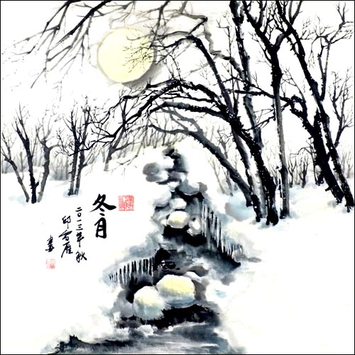 邱雪雁 山水画 《冬月》69x69cm 润格:协商