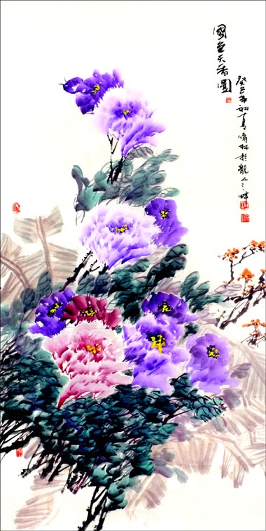 王传林 花鸟画《国色天香》69x139cm 润格:协商