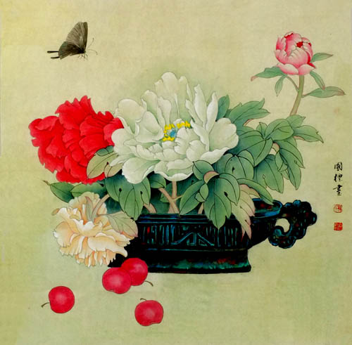 杨国彪 花鸟画《花蓝》65x65cm 润格:协商