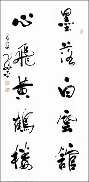 孙平 行书 对联《墨落白云馆,心飞黄鹤楼》68x135cm