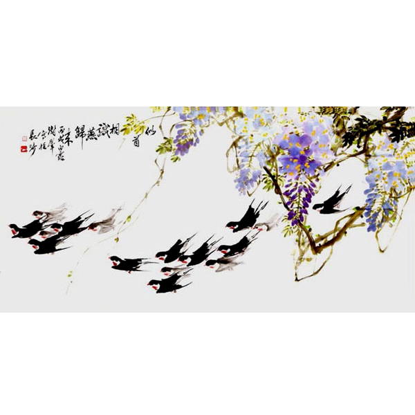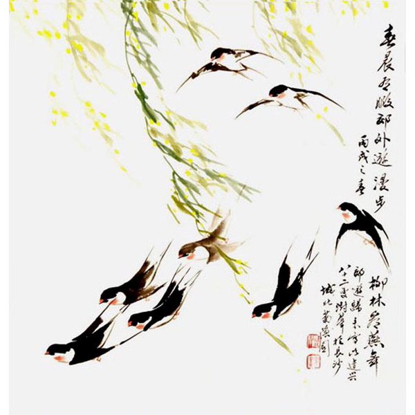 澍群 花鸟画《柳林尽燕舞》 69x69cm600