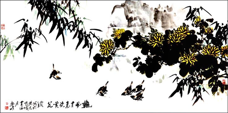 王学明 花鸟画 69.5x138cm