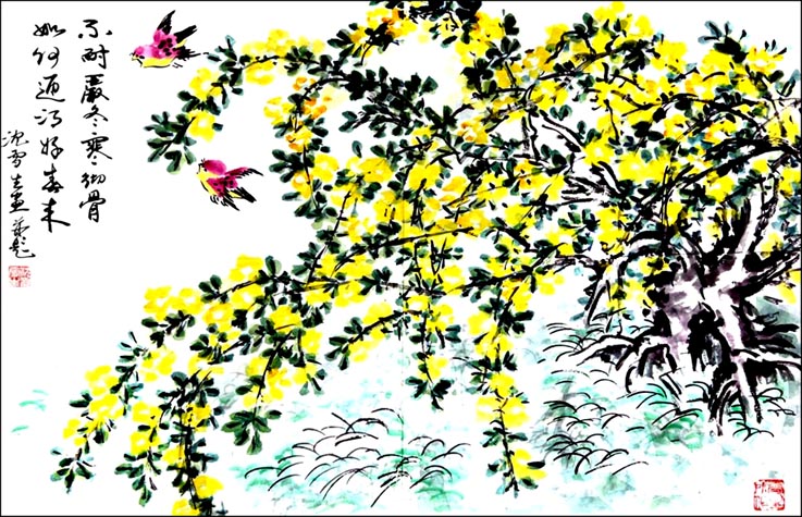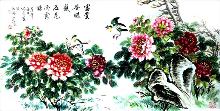 沈雪生 花鸟画《富贵春风》36x69.5cm