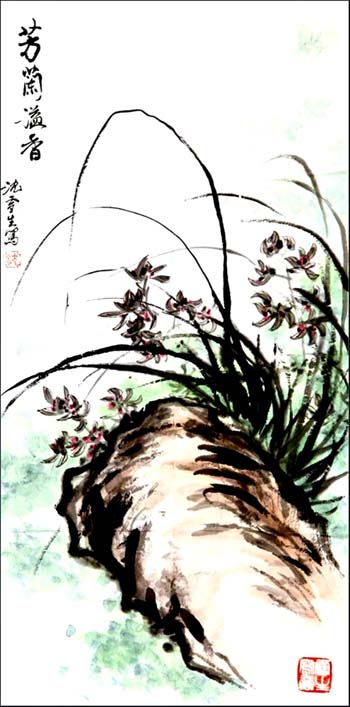 沈雪生 花鸟画《芳兰溢香》30.5x61cm