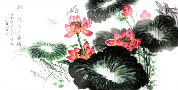沈雪生 花鸟画《拂拂清风送远香》69.5x136cm