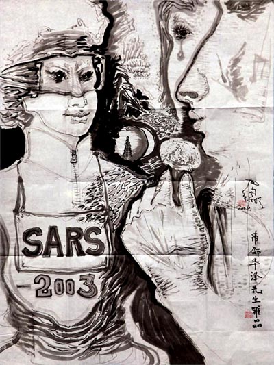 鞠明笑 人物画《SARS·2003》 68x89.5cm