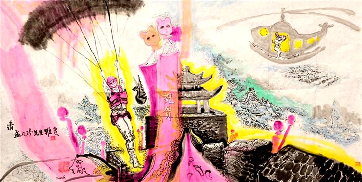 鞠明笑 人物画《飞越千年梦想》 70x136cm