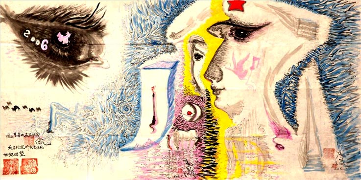鞠明笑 人物画《天马行空听书法·世界回望》 69x136cm
