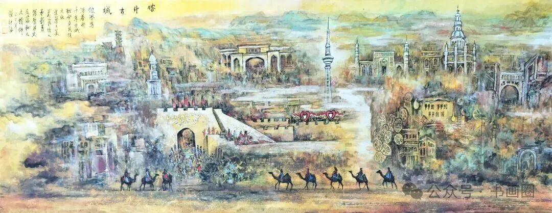 名家书画:苏继海 山水画《喀什古城》180x70cm