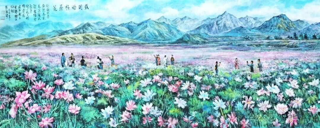 名家书画:苏继海 花鸟画《盛开的格桑花》180x70cm