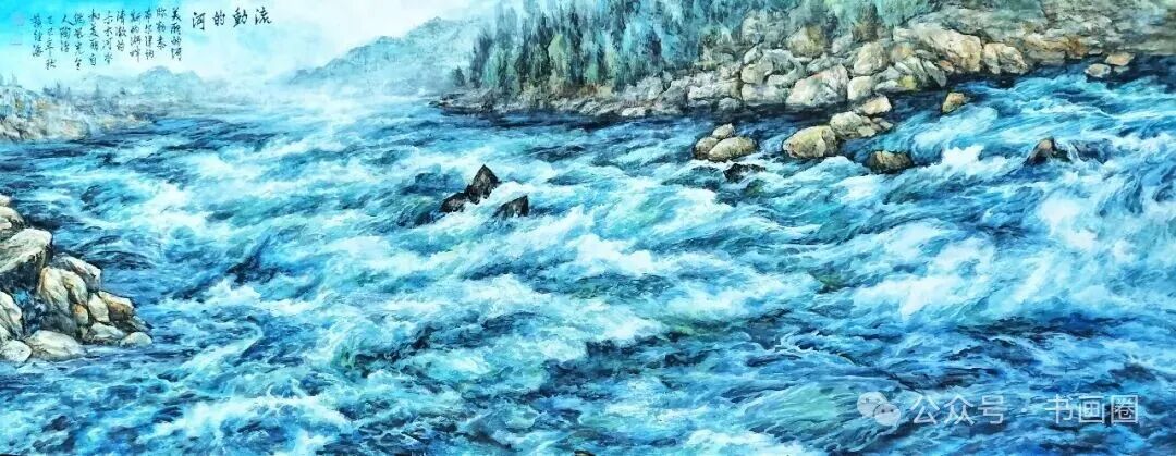 名家书画:苏继海 山水画《流动的河》180x70cm