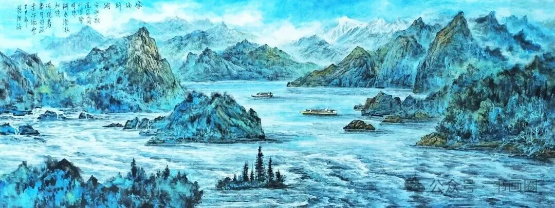 名家书画:苏继海 山水画《喀纳斯湖》180x70cm