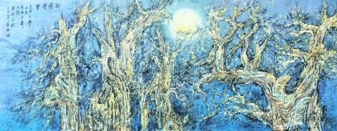 名家书画:苏继海 山水画《胡扬礼赞》180x70cm