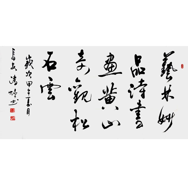 潘炜 书法 《林妙品诗书画,黄岳奇观松石云》138x70cm