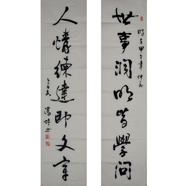 潘炜 对联 《世事洞明皆学问,人情练达即文章》138x35cmx2