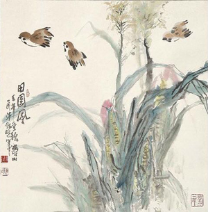 陈沛钰 花鸟画《田园风》 65x68cm300