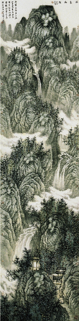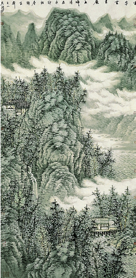 曾先国 云来云去岭上峰纸本设色 68×136cm