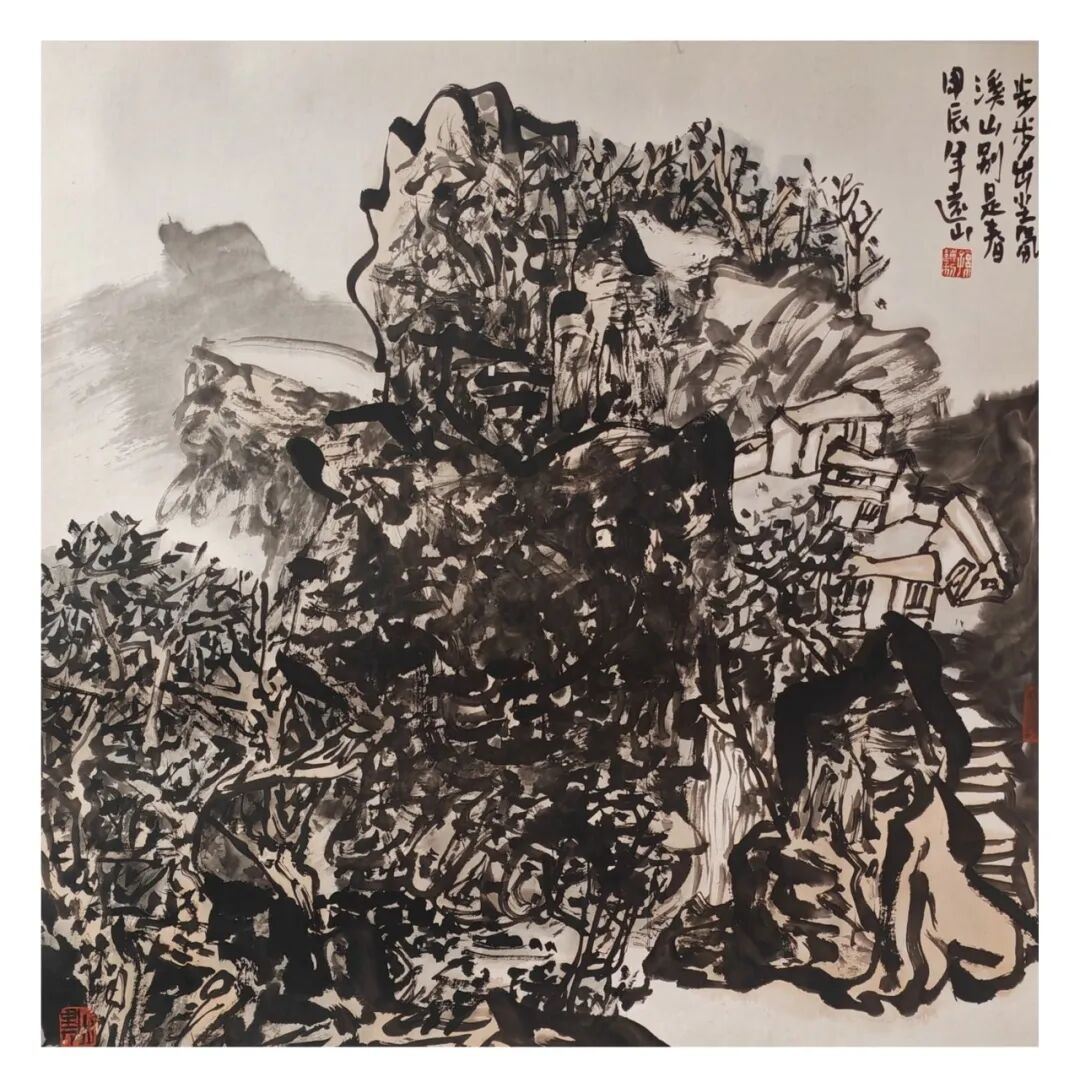 名家书画:孙远利 山水画《山居图》 68x68cm