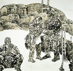 刘永杰 人物画《厚厚的土地》 136×136cm