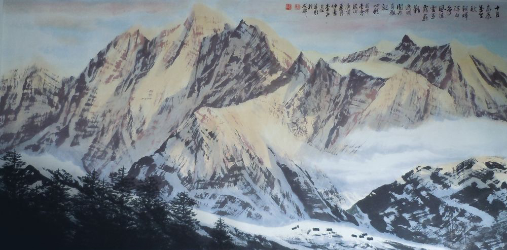 李兵,1963年生。中国美术家协会理事, 一级美术师,四川省文联党组副书记、副主席,四川省美协中国画艺委会副主任, 山水画会名誉会长,四川省政协书画院副院长,成都市美协顾问,四川省西部中国书画院院长。李兵独立探索提炼出的新皴法——“块斧劈皴”(也有人称之为“李兵冰雪皴”)和独特的“挤白”“衬白”染雪法,填补了中国水墨西域雪山画法的空白,开创了冰雪山水画的新境界,成为中国水墨雪山画体系的创立者和领军人物。