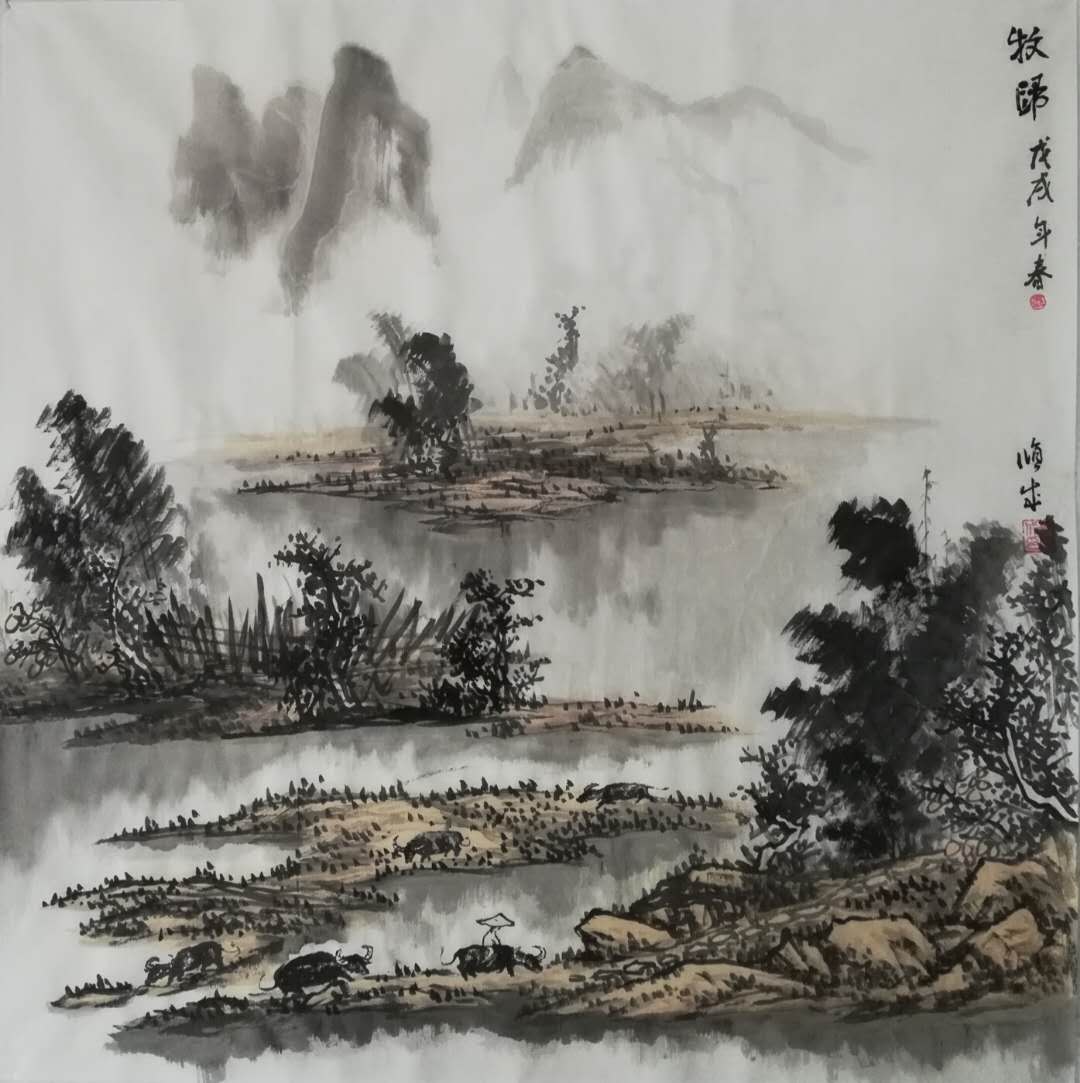 邓顺成(笔名:创一倍)1947年生,广西阳朔人,自幼喜爱绘画,85年于广西师范大学进修两年结业。95年又于黑龙江成人高等专业学校国画专业毕业。2005年在中国美协高级研修班结业。现为中国人民大学李宝林导师工作室画家并为李宝林入室弟子。李可染先生李派山水的第三代传人。花鸟画拜李苦禅的得意门生贵州大学艺术学院研究生导师王振中为师。