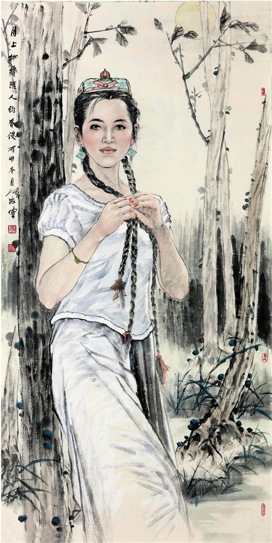 龚伟海 人物画《人约黄昏后》 136×68cm