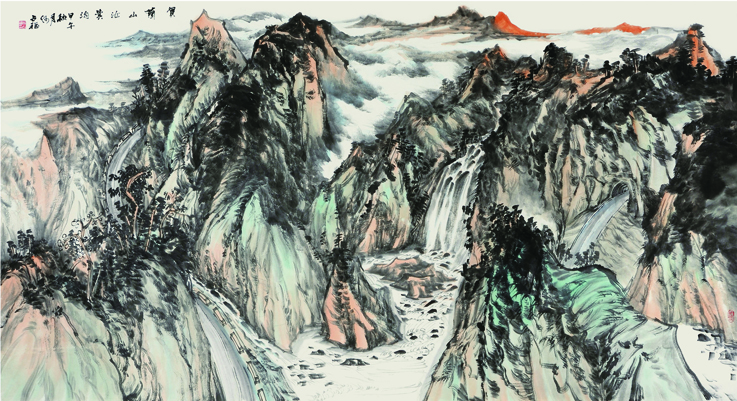何占福 山水画《神韵贺兰山》 180x96cm