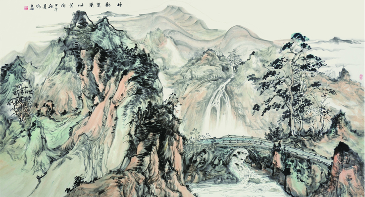 何占福 山水画《贺兰山汝莫沟》 180x96cm