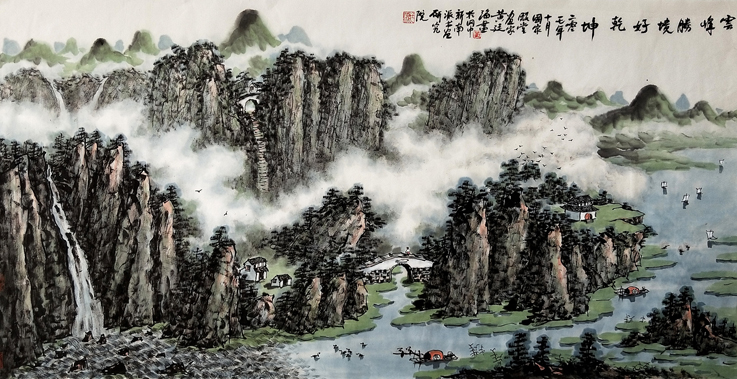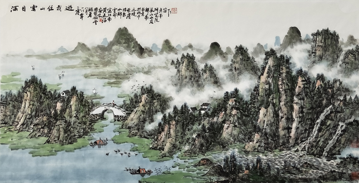 黄廷海 山水画《满目云山任我游》 68x136cm