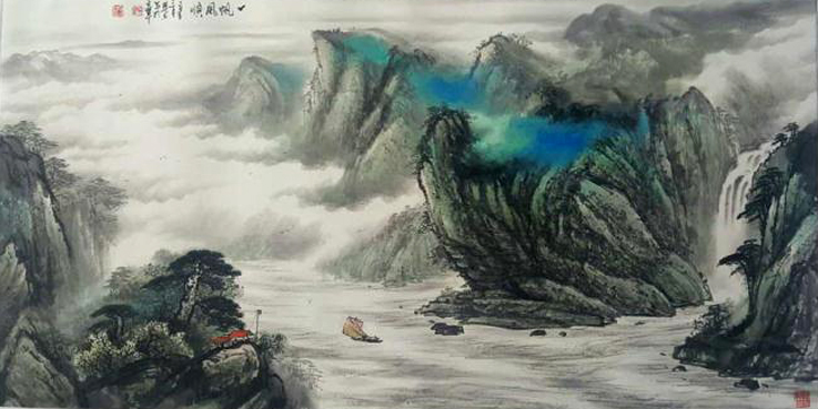 李晓东 山水画《一帆风顺》 69x136cm
