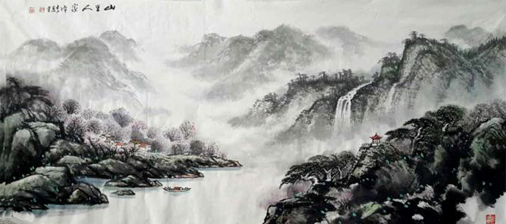 李晓东 山水画《山里人家》 69x136cm