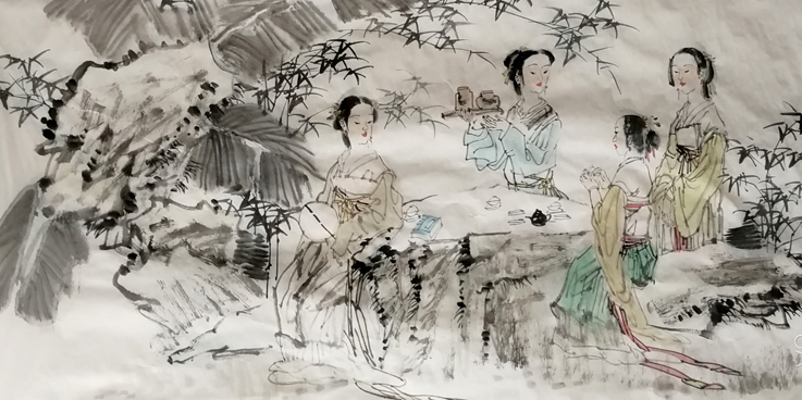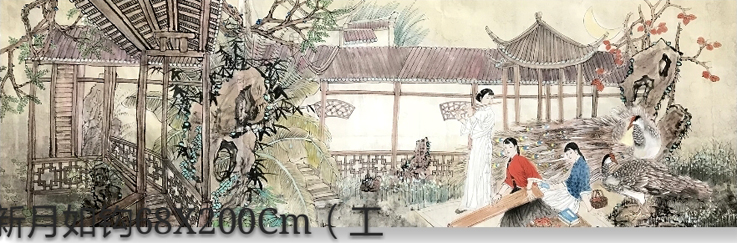 李也青 人物画《秋郊雅逸图》 68x136cm