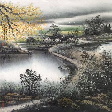 梁立志 江南水乡画《江南山水》 68x68cm