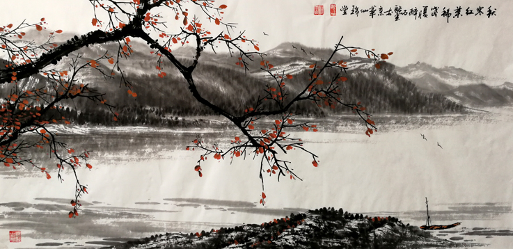 骆云 山水画《秋寒红叶稀》 136X68cm