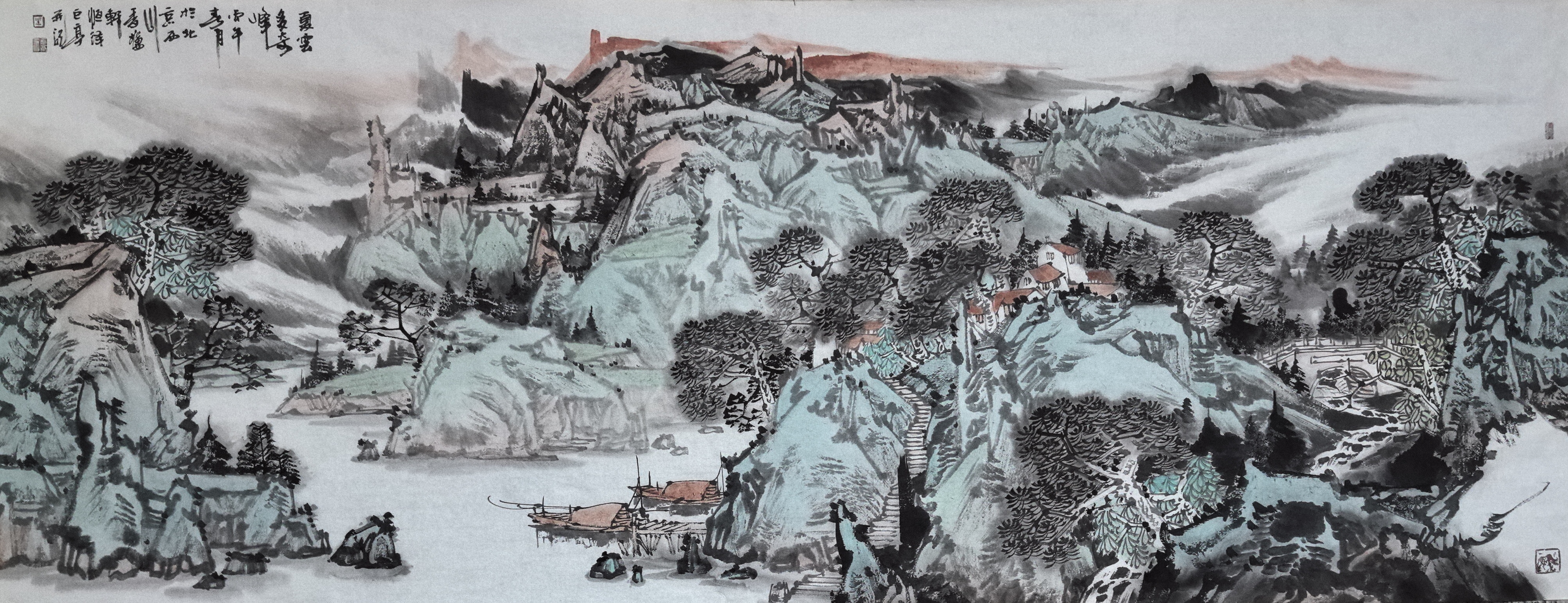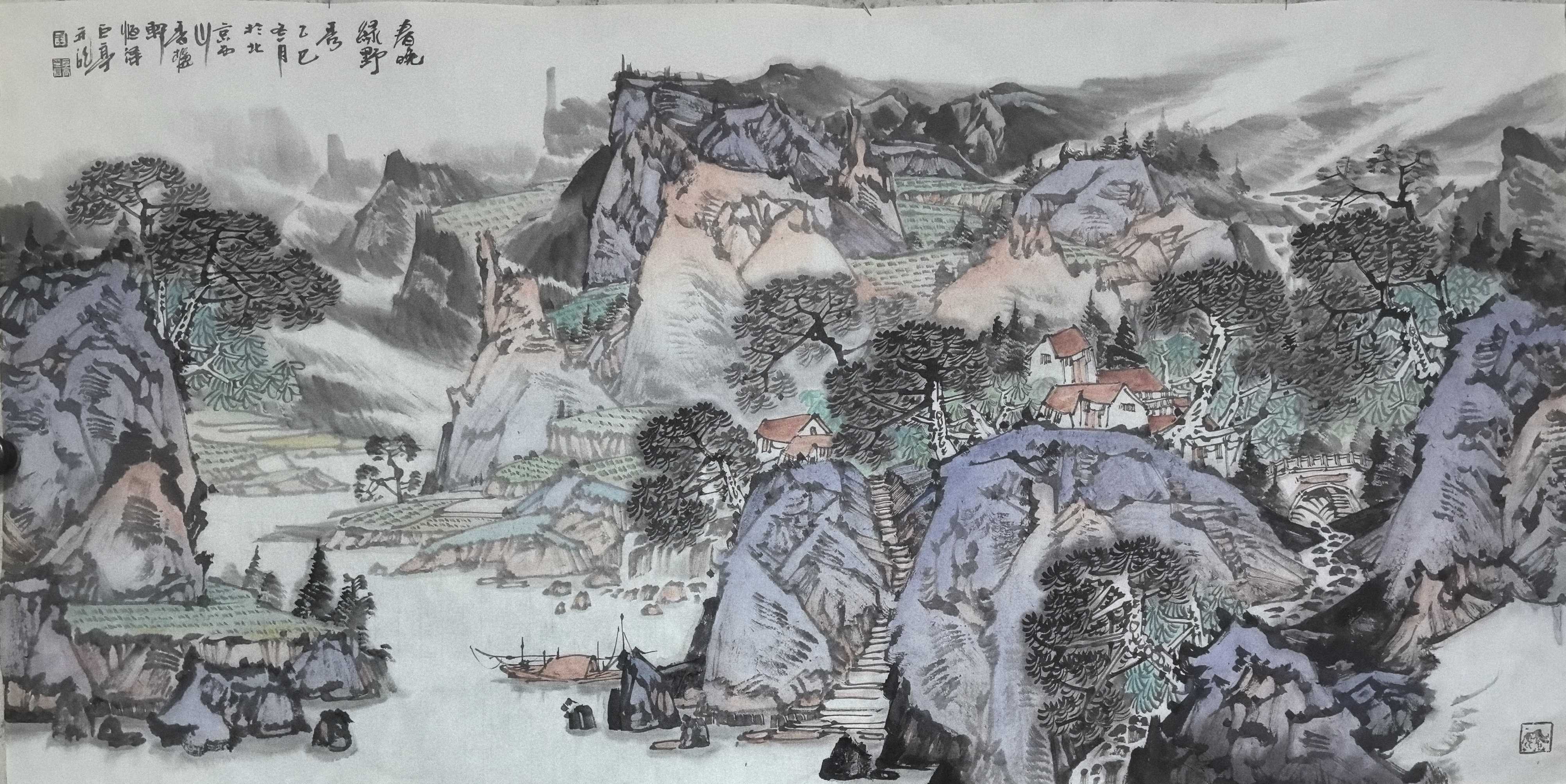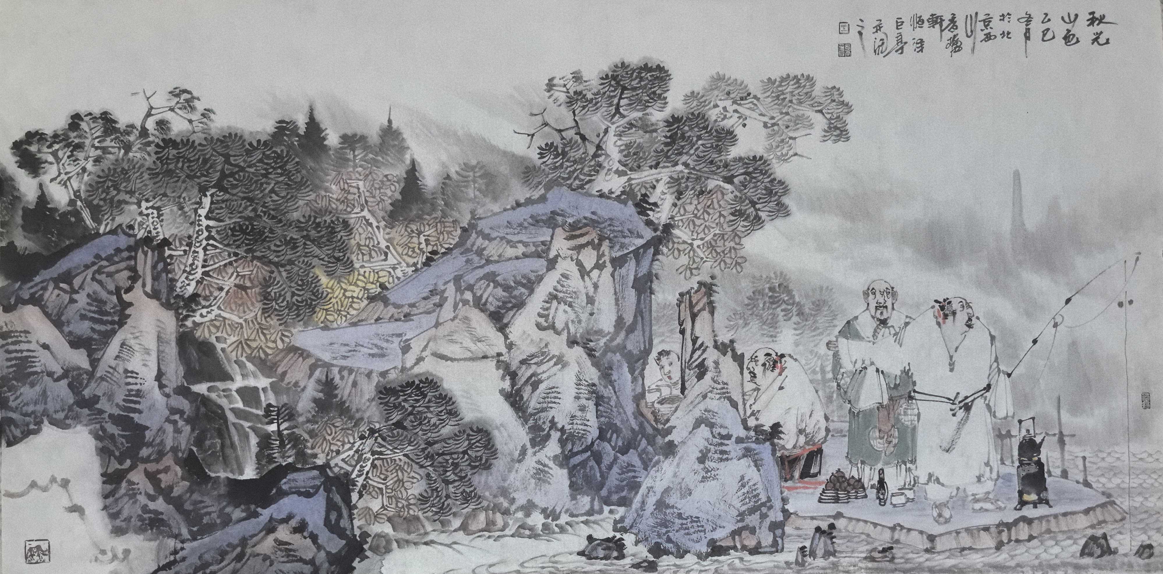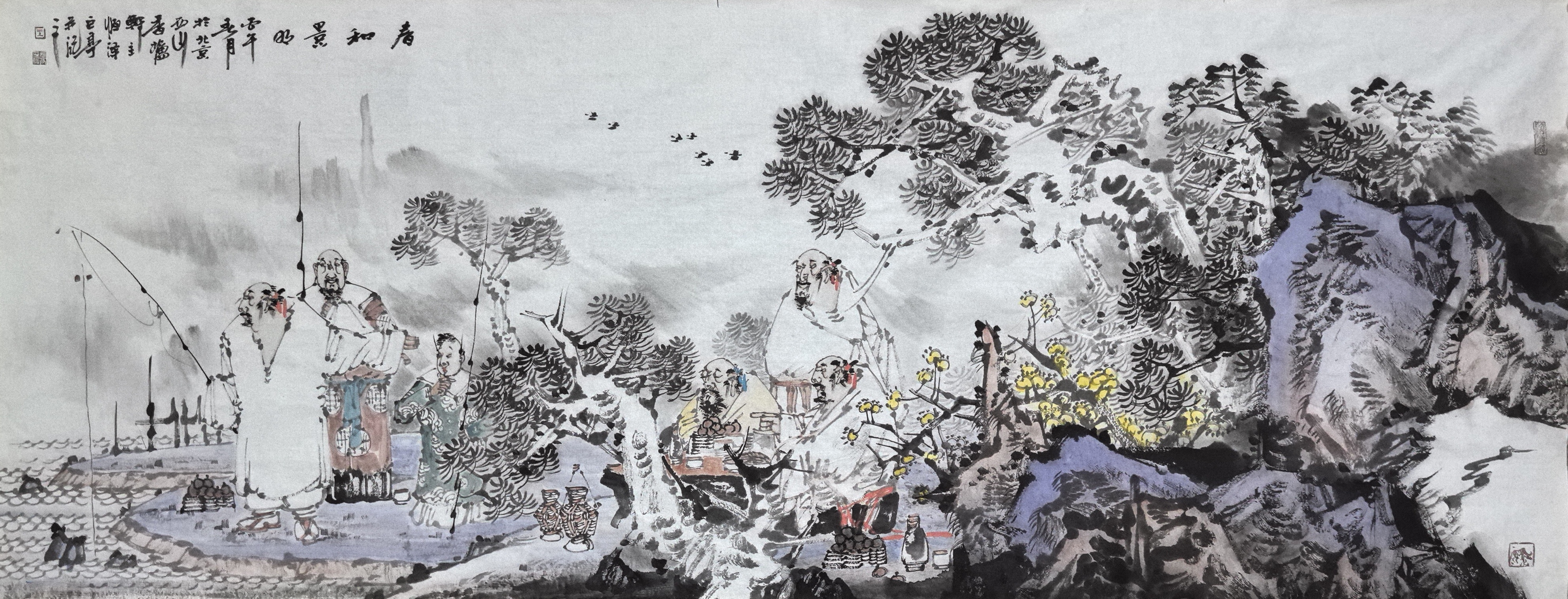 名家书画:王巨亭 人物画《天朗气清》 68x136cm