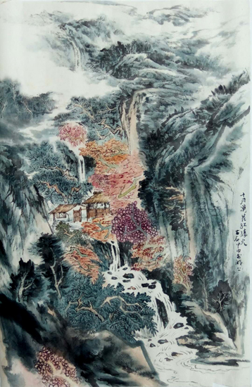 谢秉初 山水画《十月溪花红胜火》