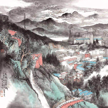 张建华 山水画《拉萨城》 68x68cm