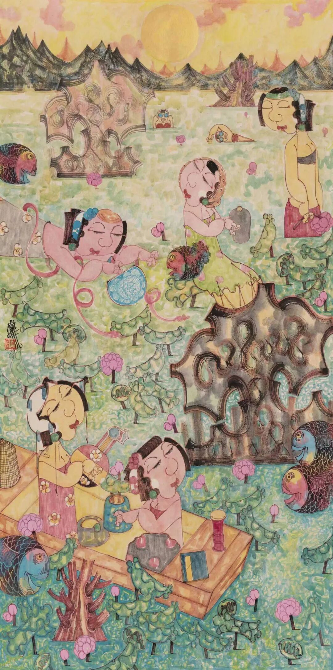 名家书画:赵锦龙 人物画 68x136cm