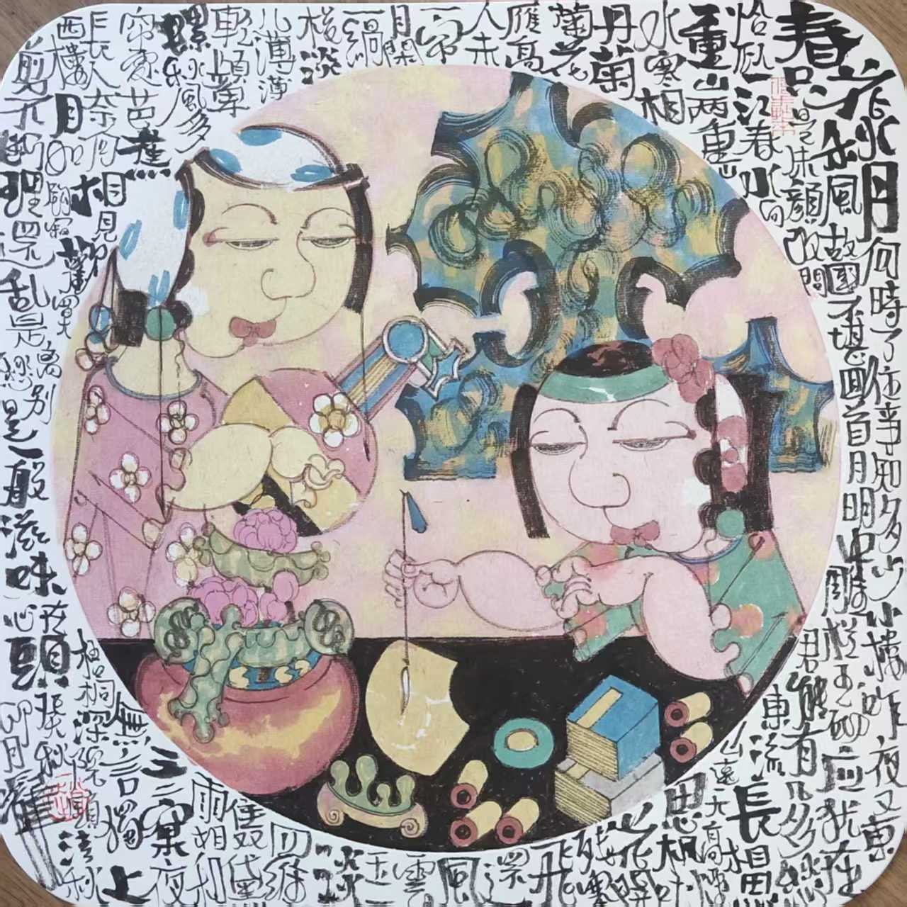名家书画:赵锦龙 人物画《心清间妙香飞》 68x68cm