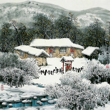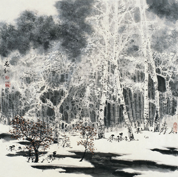 赵春秋 冰雪画《深林清水寂寞流》69x69cm