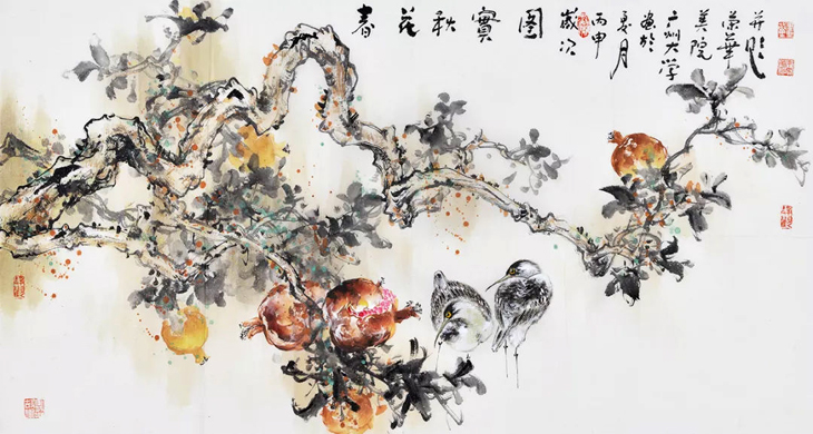 朱荣华 花鸟画《春花秋实图》 68x140m